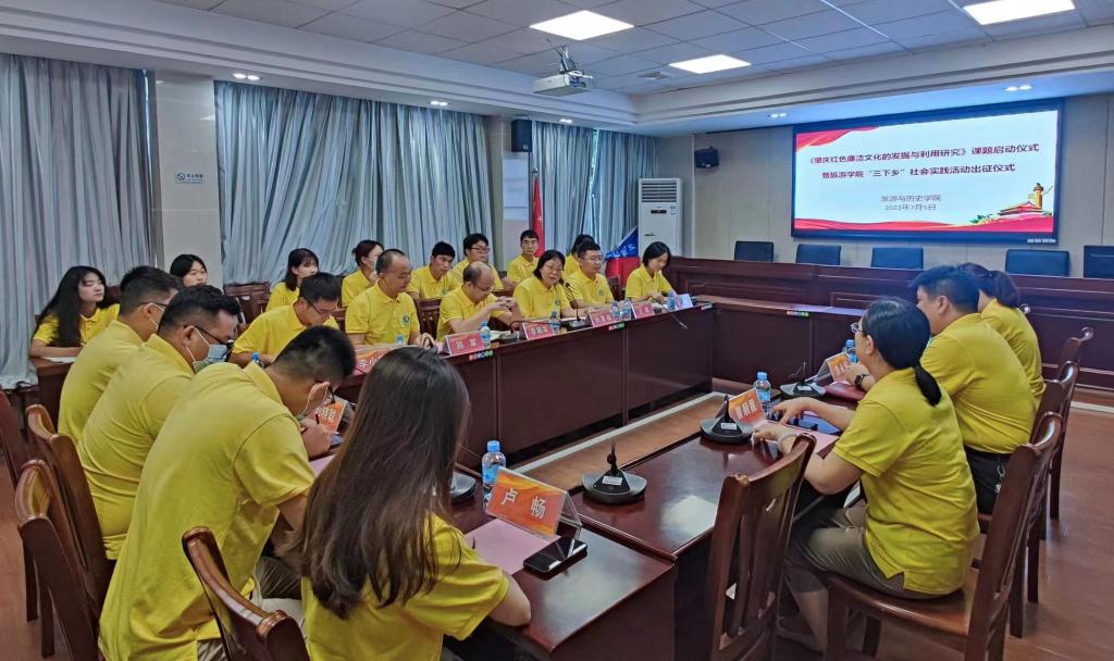 为推动党史学习教育进一步走向深入,以优异的工作实绩和良好的精神风貌迎接党的二十大的胜利召开,7月5日,TapTap点点官方网站举行《肇庆红色廉洁文化的发掘与利用研究》课题启动仪式。校纪委副书记李永佳,马克思主义学院党总支书记、院长曹顺霞,校团委副书记(主持工作)马舒洁,TapTap点点官方网站院长李朝军、党委书记杨雪梅、党委副书记陈军以及课题组成员王建、刘晓聪、阮宏、李小康、朱婷、车翔宇以及学生代表参加。