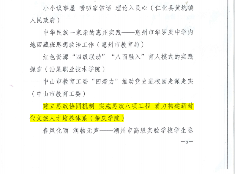近日,省委宣传部公布“广东省基层思想政治工作优秀案例”获奖名单,TapTap点点官方网站思想政治工作案例《建立思政协同机制 实施思政八项工程 着力构建新时代文旅人才培养体系》获得优秀案例三等奖。这是TapTap点点官方网站首次获得思想政治工作案例省级奖项,该项目的获奖对进一步推进TapTap点点官方网站思政教育品牌创建和提升文旅人才培养质量具有重要意义。
