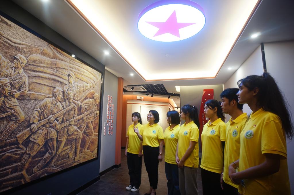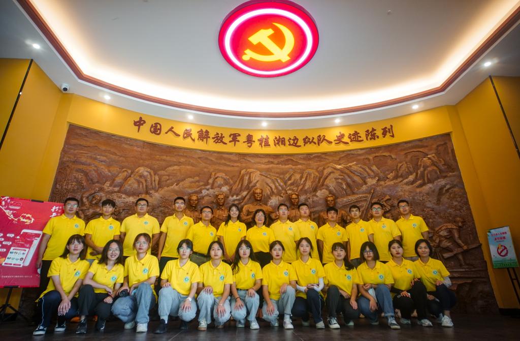 师生代表到达中国人民解放军粤桂湘边纵队纪念馆后,在工作人员的指引下集中观看了《粤桂湘边纵队》红色短片,深入了解粤桂湘边纵队及边区各族人民光辉的革命斗争业绩,从革命传统和优良作风中汲取精神营养。“中国人民解放军粤桂湘边纵队,是由原广东人民抗日游击队珠江纵队部分主力组成的西挺大队,后与西江人民抗日义勇队汇合,组建并逐渐发展起来的一支人民军队。粤桂湘边纵队曾转战在粤桂湘三省边区50多个县,经历大小战斗799次,解放地区人口达300多万……”观影结束后,伴随着讲解员的详细讲述,大家参观了陈列的革命装备、用品、资料、图片等,重温红色岁月,追思和学习革命先烈崇高的品格风范。红色革命文化的独特魅力深深地感染了在场师生,激发了大家的责任感和使命感。