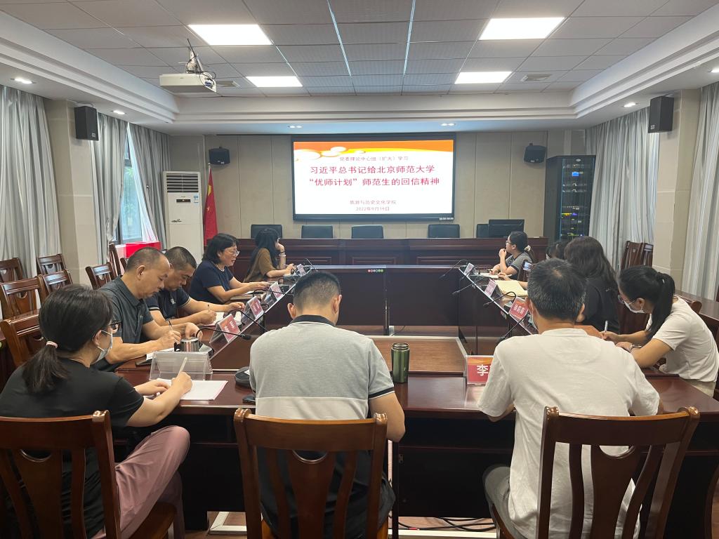 会议要求,学院要组织好历史学、地理科学的师范专业学生通过主题班会、班团活动等多种形式认真学习习近平总书记给北京师范大学“优师计划”师范生的回信精神,教育学生坚定从教信念,为祖国的教育事业发展贡献自己的力量,让青春之花绽放在祖国和人民最需要的地方。