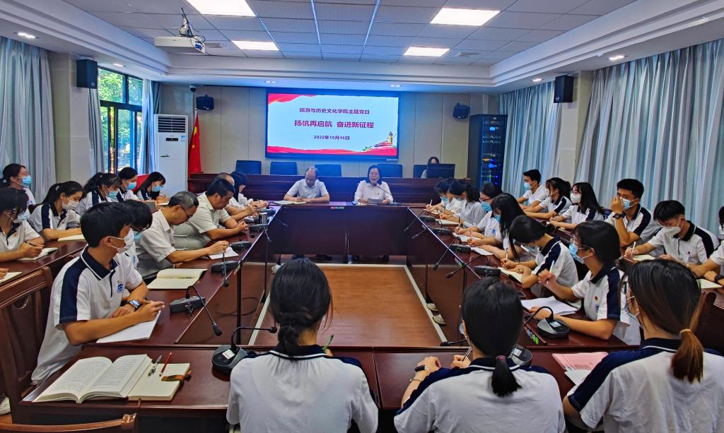 10月16日,旅游与历史文化学院举行“扬帆再启航 奋进新征程”主题党日活动。李朝军院长、郭栩东副院长、周军副院长、陈军副书记以及党支部书记、师生党员代表等约60人参加,杨雪梅书记主持。