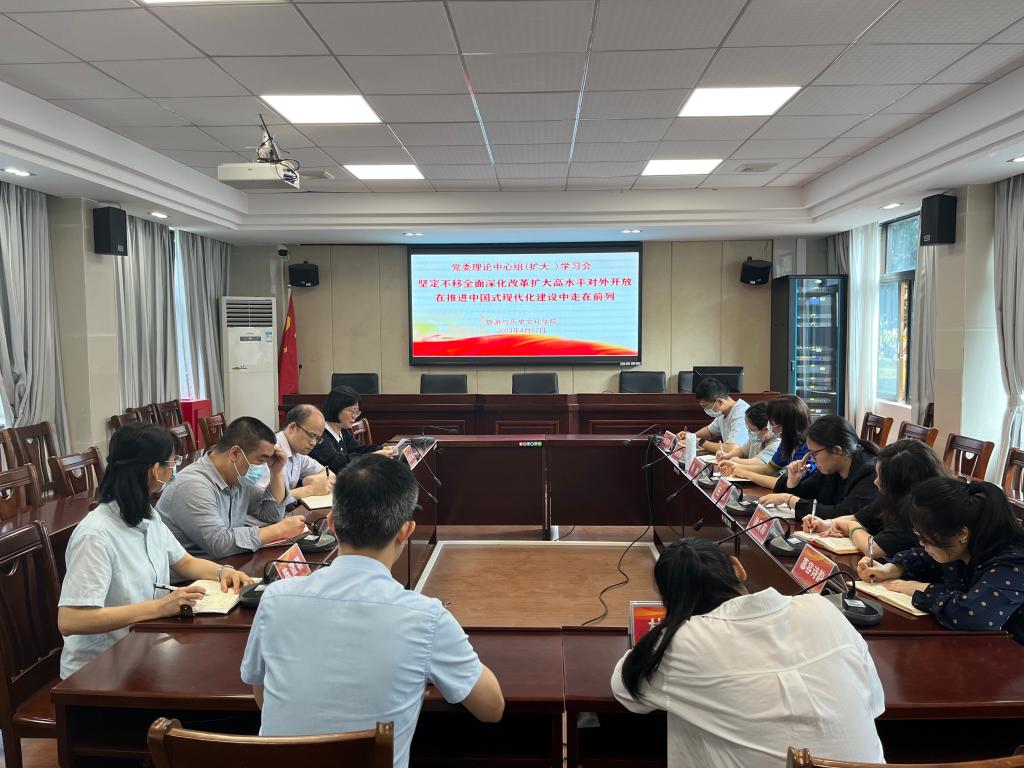 为深入学习贯彻习近平总书记视察广东重要讲话、重要指示精神,扎实开展学习贯彻习近平新时代中国特色社会主义思想主题教育,4月17日,TapTap点点官方网站党委理论学习中心组召开学习会,专题学习习近平总书记在广东考察时的重要讲话精神。党委书记杨雪梅主持,李朝军院长、周军副院长以及党支部书记、系部主任参加学习。
