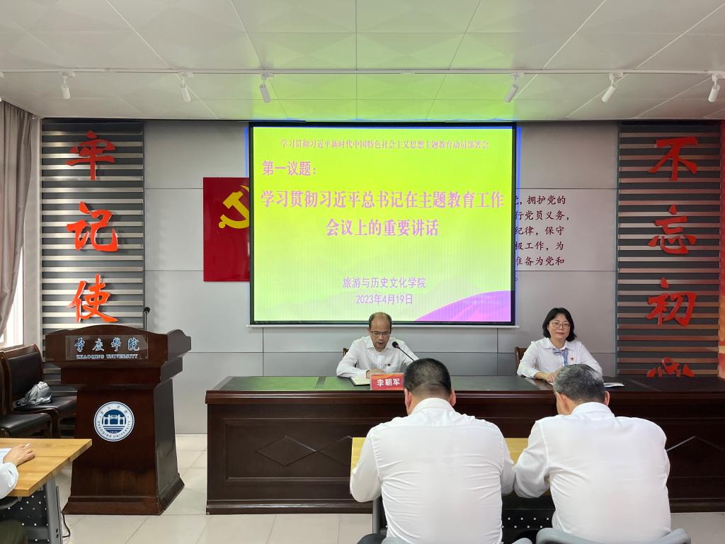 4月19日,旅游与历史文化学院召开学习贯彻习近平新时代中国特色社会主义思想主题教育动员会,认真学习学校学习贯彻习近平新时代中国特色社会主义思想主题教育动员部署会精神,对全院主题教育工作进行安排部署,动员全院师生党员以良好的精神面貌投入到主题教育中来,确保主题教育有序开展、取得实效。李朝军院长、杨雪梅书记、周军副院长以及党支部书记、全体党员参加动员会,专职组织员陈建群主持。