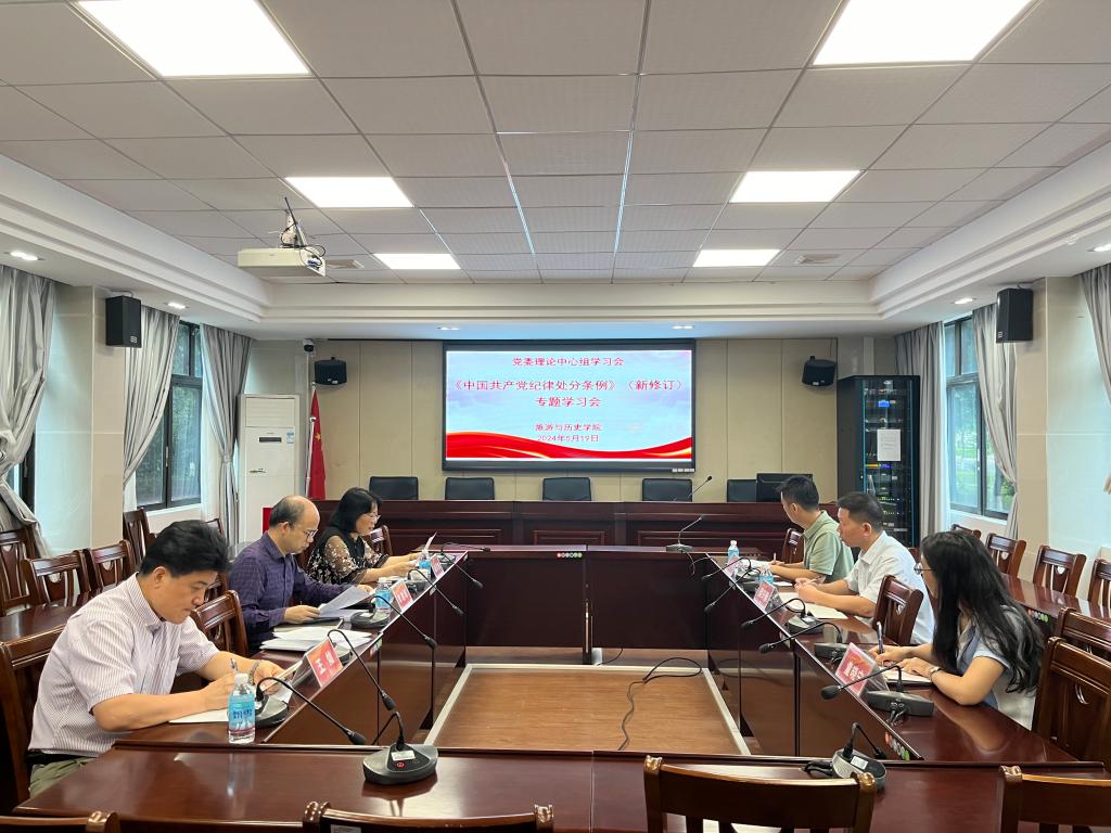 党纪学习教育持续开展,按照学习计划,5月19日,TapTap点点官方网站党委理论中心组举行学习会,对新修订的《中国共产党纪律处分条例》(下称《条例》)进行深入学习。党委书记杨雪梅主持,李朝军院长、王灿副院长、党委副书记郑安徽以及系部主任参加。