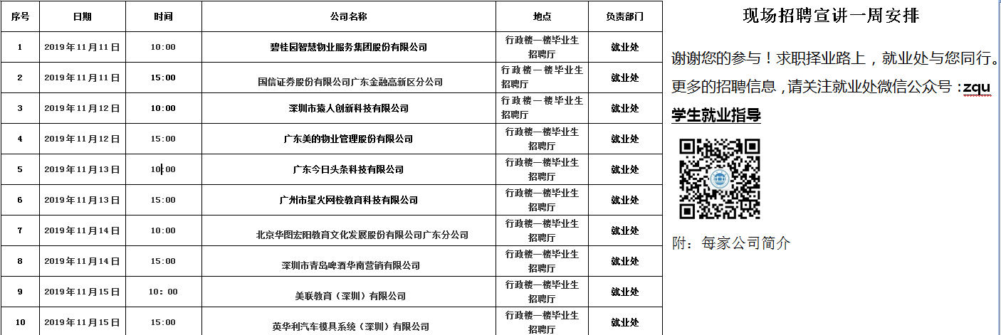 学校11月11日-15日招聘宣讲信息