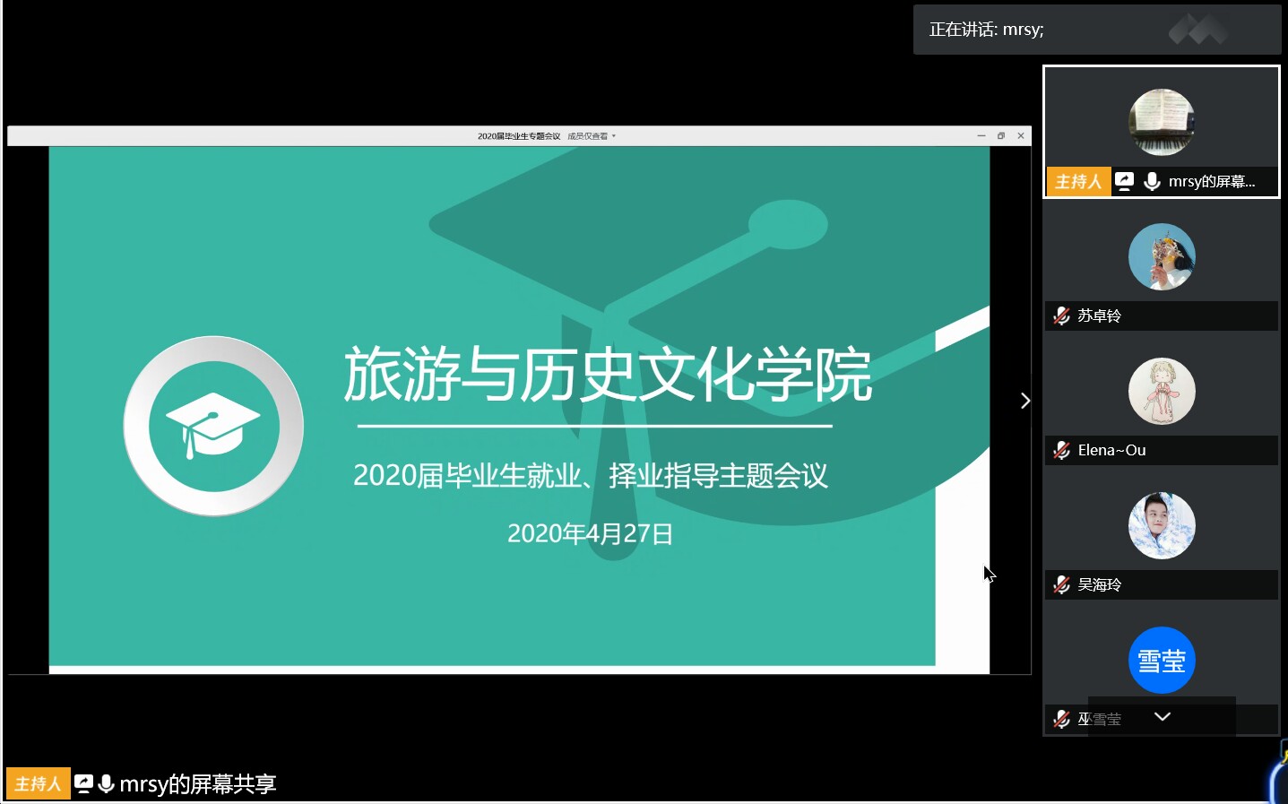 为深入贯彻落实教育部《关于应对新冠肺炎疫情做好2020届全国普通高等学校毕业生就业创业工作的通知》、《广东省人民政府关于印发广东省进一步稳定和促进就业若干政策措施的通知》和3月25日全省高校毕业生就业工作网络视频会议精神,在疫情防控期间,切实推进毕业生就业工作, 于4月27日晚TapTap点点官方网站举行了2020届毕业生就业、择业指导主题会议。会议由负责就业工作的辅导员慕容诗韵老师主持,全体毕业生参加了会议。