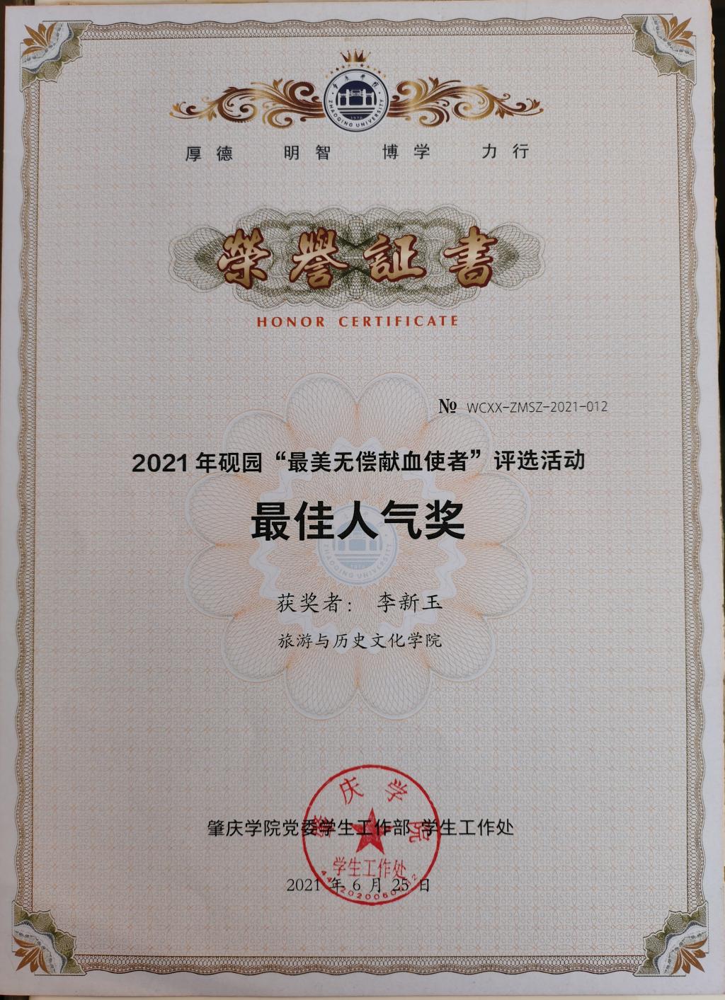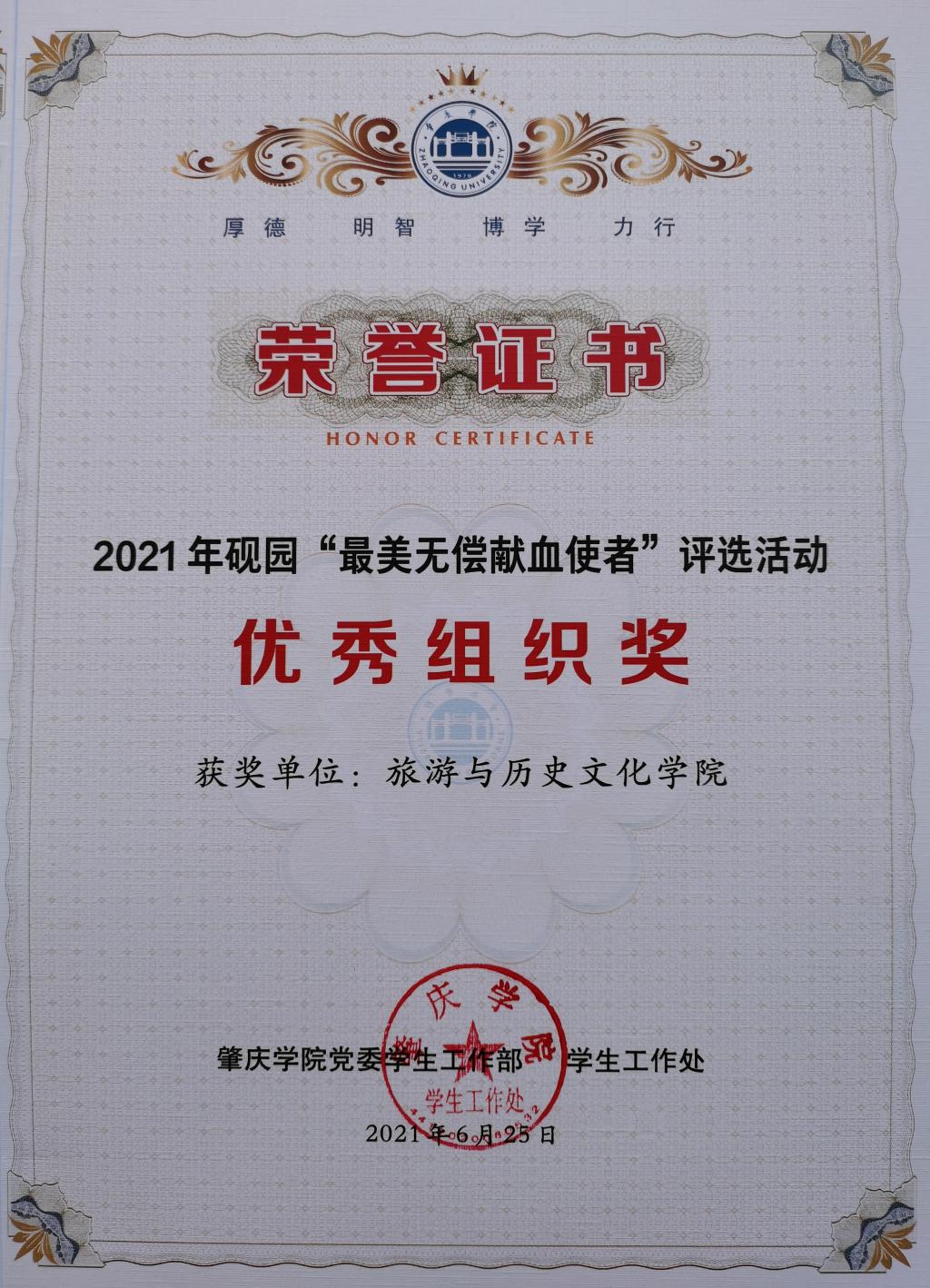 2020-2021学年,TapTap点点官方网站积极响应学校无偿献血号召发动组织师生参加无偿献血活动,圆满完成无偿献血任务,荣获肇庆学院2020年无偿献血工作达标单位。并在2021年无偿献血工作海报评选中荣获二等奖、砚园“最美无偿献血使者”评选活动中荣获优秀组织奖,辅导员陈瑜瑕老师获评2020年度无偿献血工作先进个人。