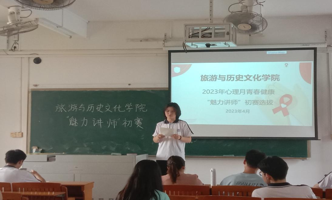 为动员号召广大学生关注性与生殖健康的问题,提升同学们预防艾滋病的素养与能力。4月12日,旅游与历史文化学院学生健康促进委员会在一教505教室举行大学生心理健康教育宣传月活动之青春健康“魅力讲师”初赛选拔。本次比赛共有10位同学参加,指导老师陈瑜瑕和黄健伟、梁燕、黄金华三位学生骨干担任评委。