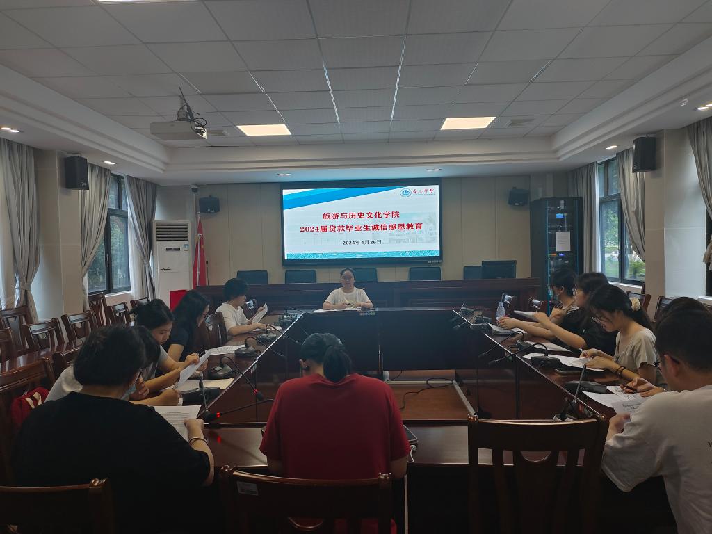 旅游学院高度重视贷款毕业生诚信还款教育工作,抓住毕业生返校契机开展诚信还款教育,激励受助学生珍惜当下,常怀感恩之心,立志奉献社会、回报社会。