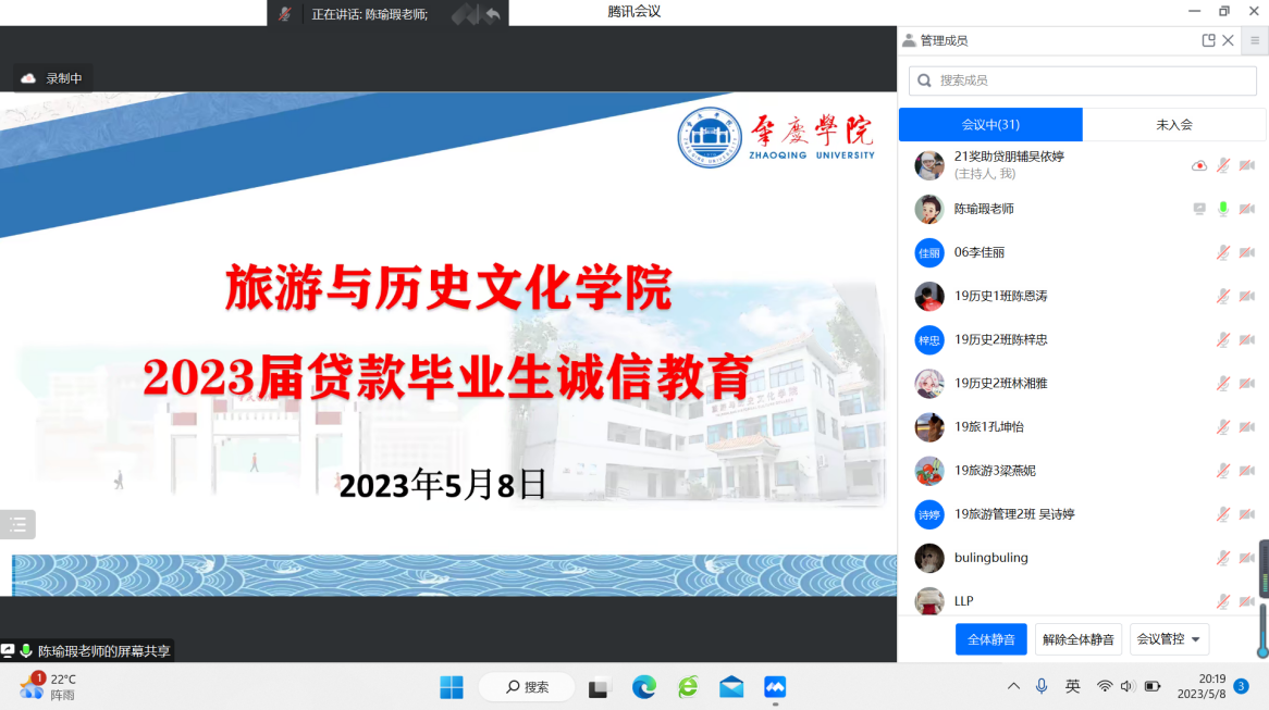 为切实加强国家助学贷款贷后管理工作,增强贷款毕业生诚信责任意识,5月8日晚,TapTap点点官方网站开展2023届贷款毕业生线上诚信主题教育,负责学生资助工作辅导员陈瑜瑕、2023届贷款毕业生参会。